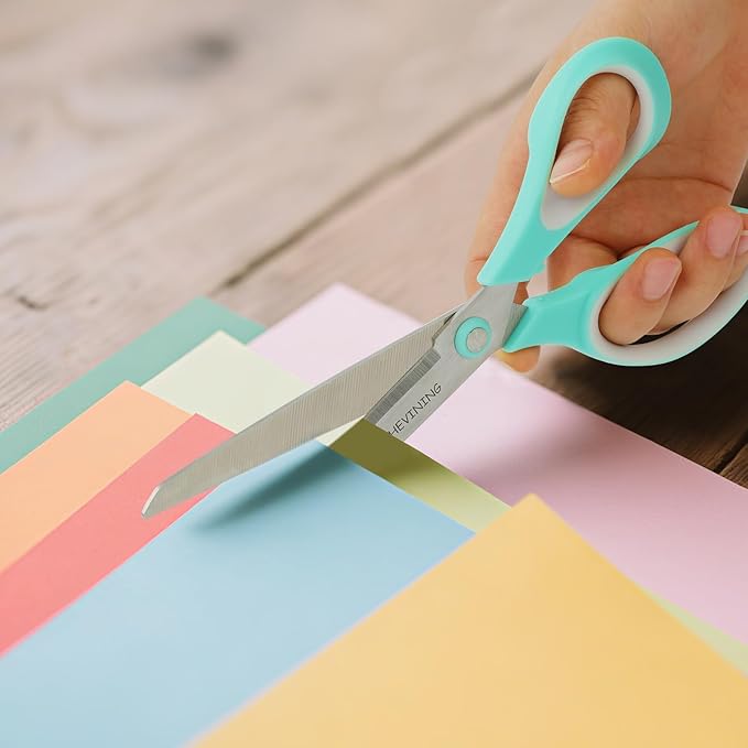 - 1. Ultra-Sharp & Durable Blades These office scissors feature precision-ground stainless steel blades that stay sharp longer, effortlessly cutting through paper, cardboard, fabric, and more. The high-quality PP+TPR construction ensures durability and long-lasting performance, making them a great value for home, school, or craft projects.