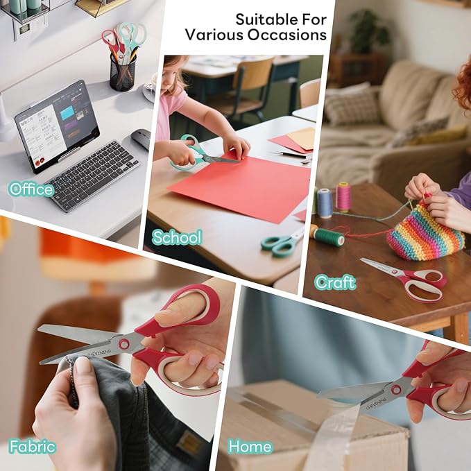 - 4. Multi-Size & Versatile for All Needs Available in 7-inch and 8-inch sizes, this all-purpose scissor set is ideal for office work, sewing, school projects, and household use. The vibrant colors (red & green) make them easy to find in drawers or workspaces.