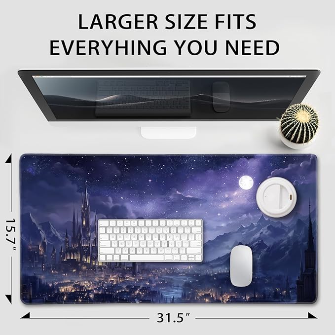 - ENCHANTING DESIGN: Features a magical nighttime castle scene with illuminated spires against a starlit purple sky, creating an immersive fantasy aesthetic for your desktop. This gaming mouse pad adds a touch of fun to your workspace