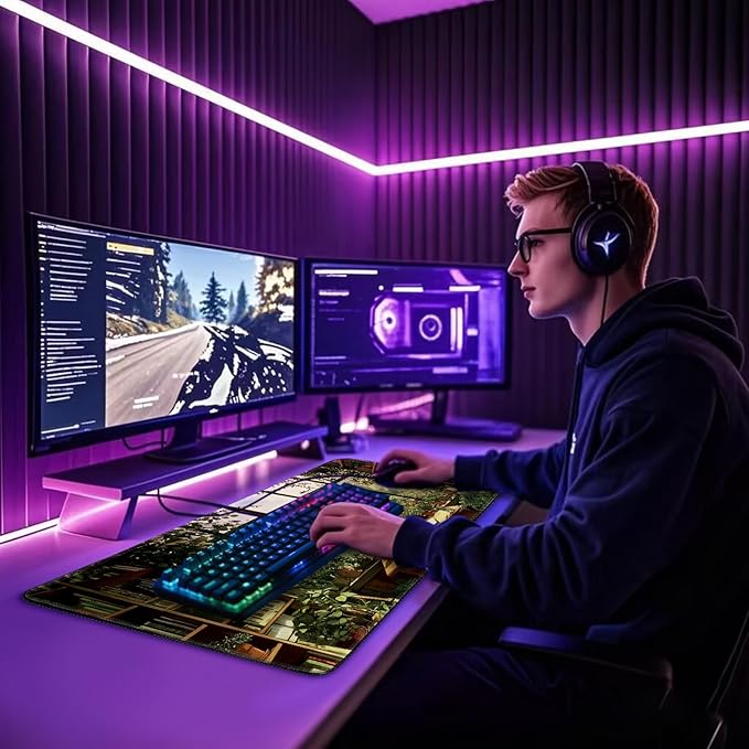 - VERSATILE USE: This large mouse pad is excellent for All mouse types. Great for gaming, office work, and creative tasks. Ideal gift for gamers, office workers, designers, graphic designers, video editors, or programmers who use multiple devices such as tablets and keyboards, and the favorite of Content creators and streamers, artists, casual users seeking clutter free desks for multitasking such as work, gaming, and learning, as well as enthusiasts who enjoy immersive settings in theme design