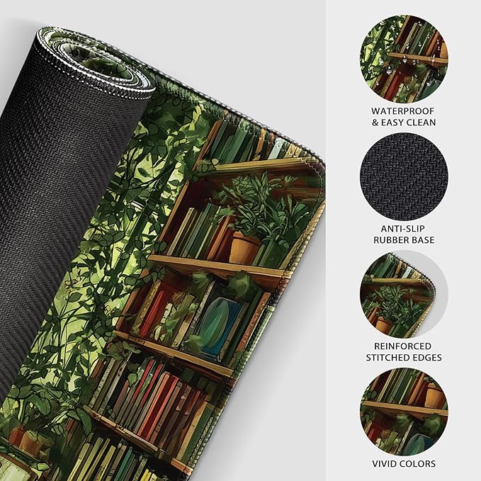 Green Library Study Room Large Gaming Mouse Pad 31.5"x15.7"|XXL Desk Mat, Non-Slip Rubber Base & Stitched Edges - Extended Waterproof Mousepad for PC/Laptop/Office/Home Decor