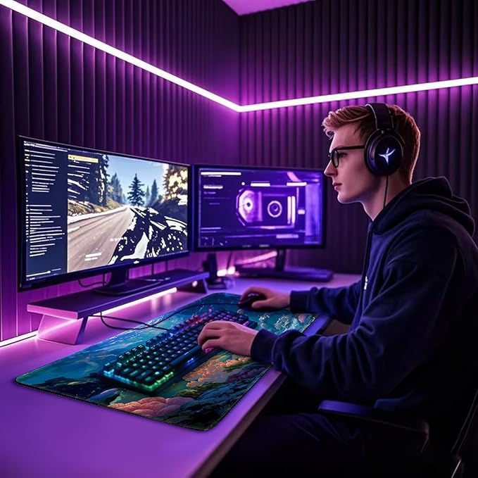 - VERSATILE USE: This large mouse pad is excellent for All mouse types. Great for gaming, office work, and creative tasks. Ideal gift for gamers, office workers, designers, graphic designers, video editors, or programmers who use multiple devices such as tablets and keyboards, and the favorite of Content creators and streamers, artists, casual users seeking clutter free desks for multitasking such as work, gaming, and learning, as well as enthusiasts who enjoy immersive settings in theme design