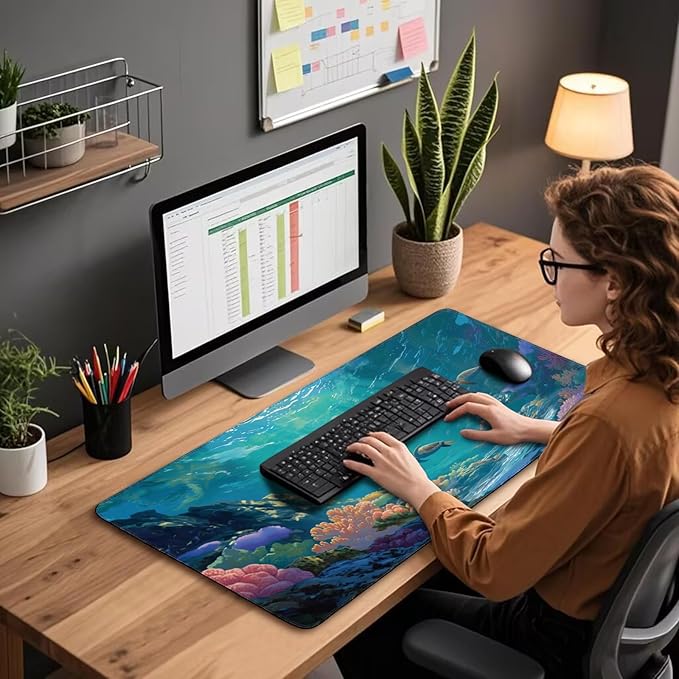 - PREMIUM DESIGN: Large extended mouse pad featuring a vibrant underwater scene with sea turtles and coral reefs in stunning turquoise and coral colors. This gaming mouse pad adds a touch of fun to your workspace