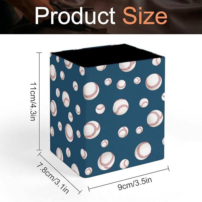 Square Pen Holder & Pencil Organizer for Desk - Office Storage Organizer, Markers/Makeup Brushes/Scissors Holder, Compact Desk Decor Accessories for Home Classroom School(Baseball)