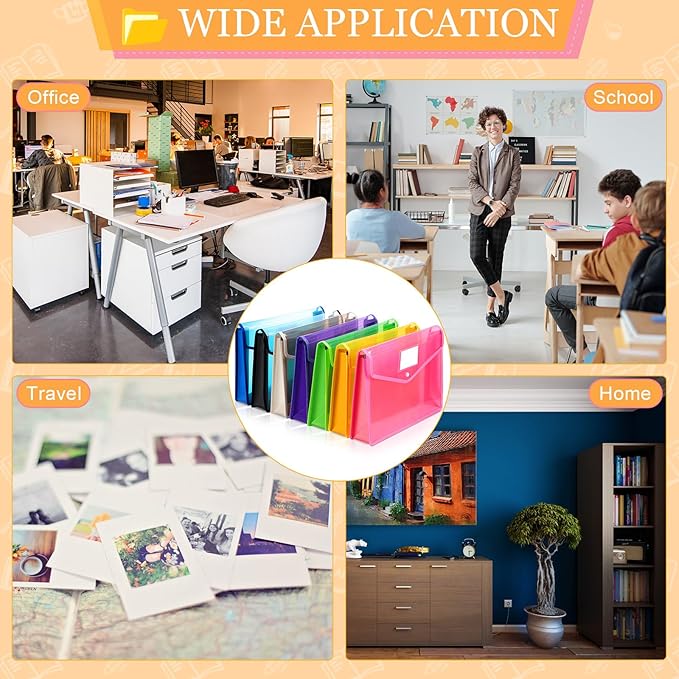 - Diverse Colors to Distinguish: you will receive 36 pieces of plastic envelopes with snap closure in 9 diverse colors, namely white, blue, black, green, red, yellow, orange, purple and pink, 4 pieces of each color; These diverse colors can help you to distinguish different documents; And the enough quantity and colors can meet your daily use and also save your energy to find more folders