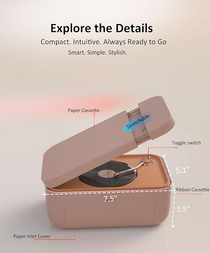 - ✅【Unique Turntable-Inspired Bluetooth Photo Printer】 This wireless photo printer is designed with a retro vinyl look and a tonearm-style lever. Connect via Bluetooth to use it as a compact speaker, play voice messages, or print photos—all in one device that combines fun and function.