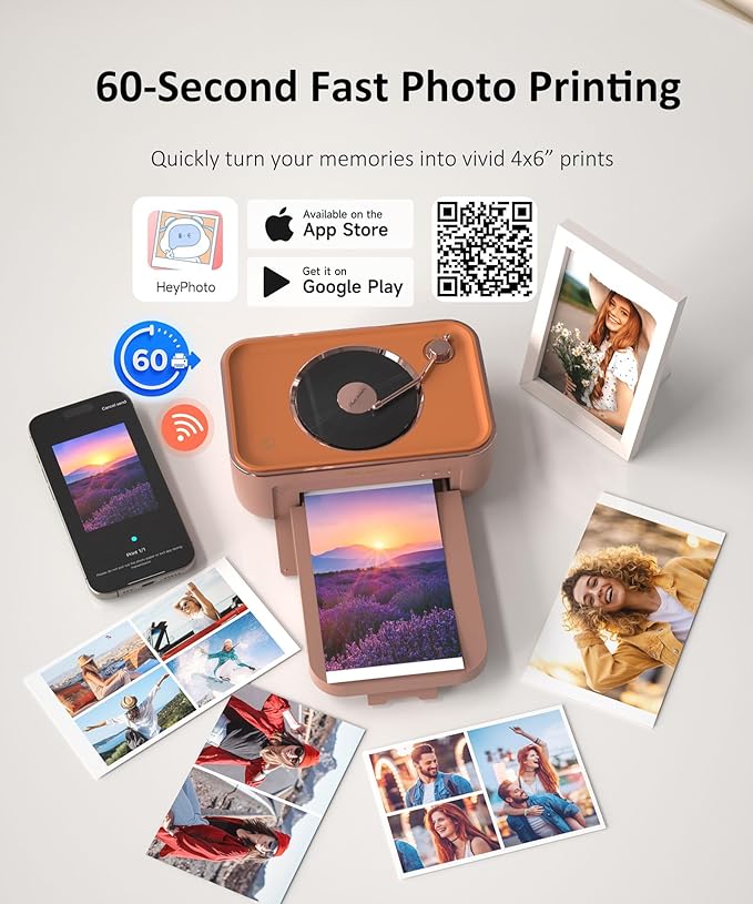 - ✅【WiFi Photo Printer with Free App for iPhone & Android】Use the free HeyPhoto app to print photos, collages, or ID pictures effortlessly. Fully compatible as a photo printer for iPhone and Android, this phone photo printer makes a thoughtful gift to capture, preserve, and share beautiful memories.
