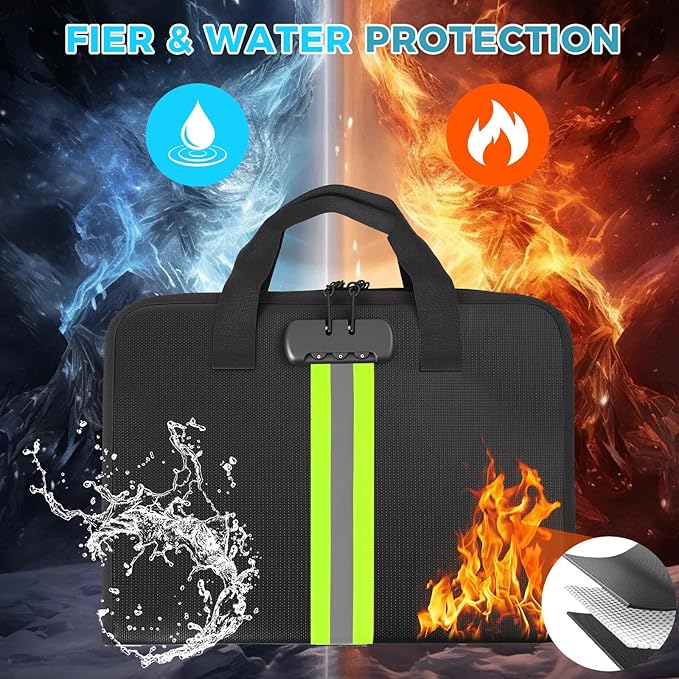 - High-Quality Materials:Fireproof expanding file organizer made of 3-layered silicone-coated fiberglass, withstands extreme temperatures up to 2500℉ has passed SGS testing(UL94 certified). Protects important documents from fire, flood, and wet weather conditions