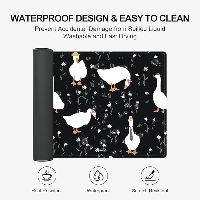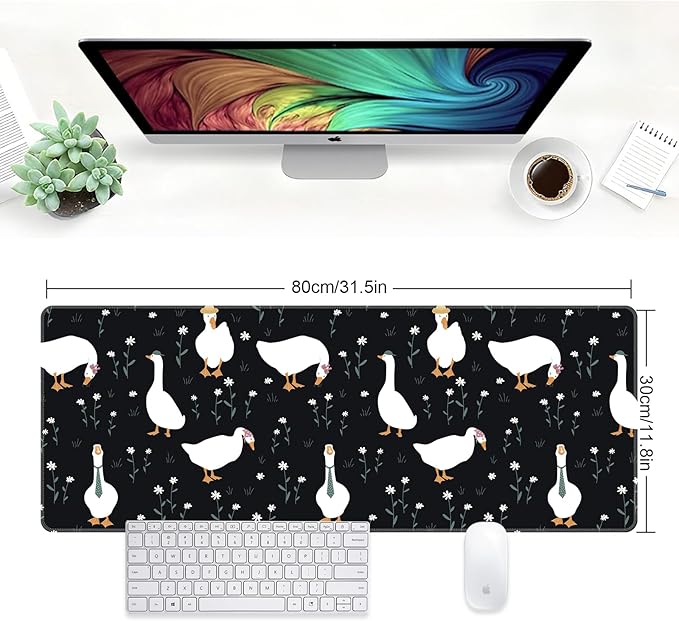 Large Desk Mat, Desk Matt for Desktop, Computer Gaming Mouse Pads, Anti-Slip Rubber Base, Stitched Edges Soft Mat for Desktop Office Home 31.5 x 11.8 Inches (Funny Ducks)
