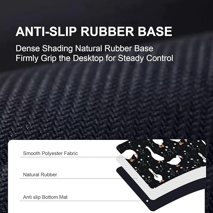 - 【High-Quality Gaming Mouse Pad】 The edges of this large mouse pad are reinforced with double stitching to protect it from wear, deformation, and fraying, whether it is used for games, work or study, ensuring durability over time. The non-slip rubber base provides a strong grip, ensuring stable control. Our advanced printing technology ensures that each vibrant pattern stays bright and resists fading over time, so you can express your style day after day.