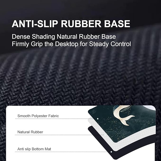 - 【High-Quality Gaming Mouse Pad】 The edges of this large mouse pad are reinforced with double stitching to protect it from wear, deformation, and fraying, whether it is used for games, work or study, ensuring durability over time. The non-slip rubber base provides a strong grip, ensuring stable control. Our advanced printing technology ensures that each vibrant pattern stays bright and resists fading over time, so you can express your style day after day.