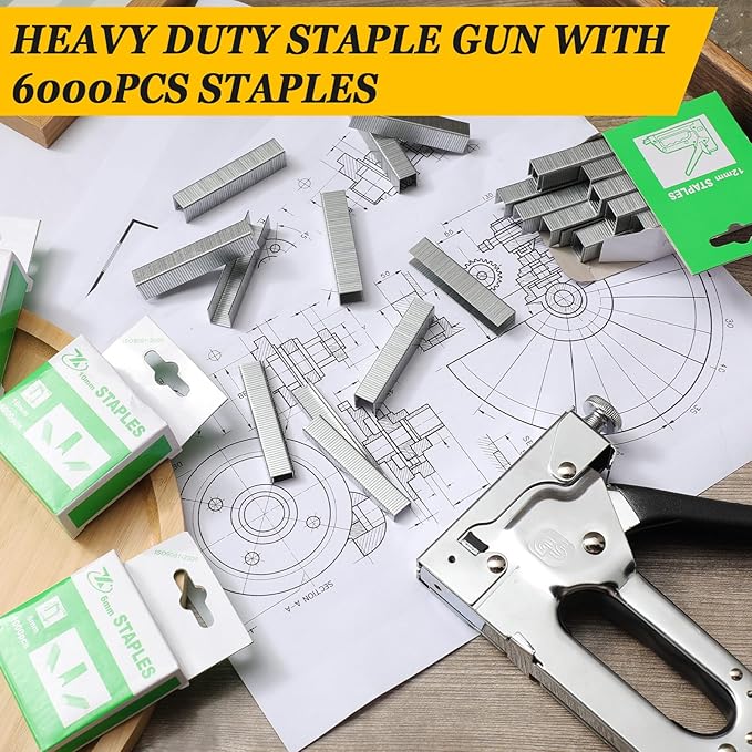 - Large Capacity Set: contains 1 staple gun and 6000 pcs 1/4'', 3/8'', 1/2'' steel staples, suitable for upholstery, decoration, repair and crafts, widely applied in decoration and DIY projects