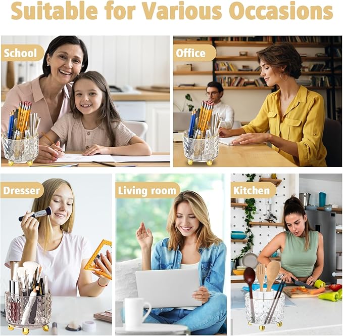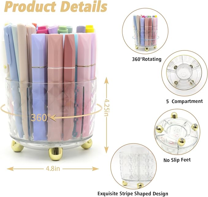 - Intelligent All-Round Rotation Structure - Our gold pen holder set has the function of 360 degree free rotation.With five compartments, the pen holder for desk provides ample storage without taking up too much desktop space.