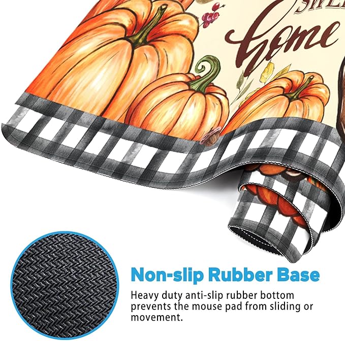 Britimes Fall Gnome Pumpkin Polka Dot Large Mouse Pad Non-Slip Desk Pad Keyboard and Mouse Desk Mat Autumn Leaves Black White Grid Gaming Mousepad for Game,Office & Home,31.5 x 15.7 in