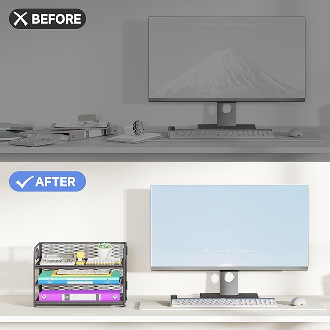 - 【DURABLE CONSTRUCTION】This desk file organizer is crafted from premium metal mesh. Thickened support rods and a sturdy frame ensure that the file organizer won't warp or break when holding a large volume of paper or letters.