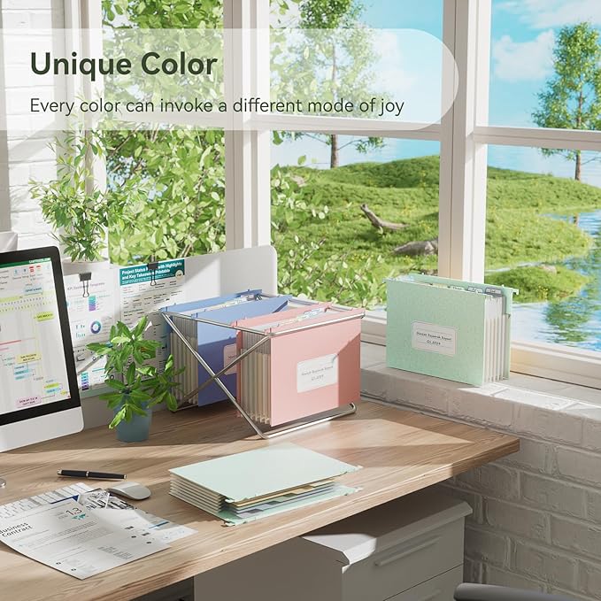 - 【Large Capacity Wheat Straw Hanging Folder】 EcoStash's Wheat Straw Hanging Folders come in three colors: Wheat Yellow, Sky Blue, and Strawberry Pink. Using different colors allows you to easily organize and differentiate your documents. Equipped with removable colored label stickers, this further aids in your classification and identification needs.