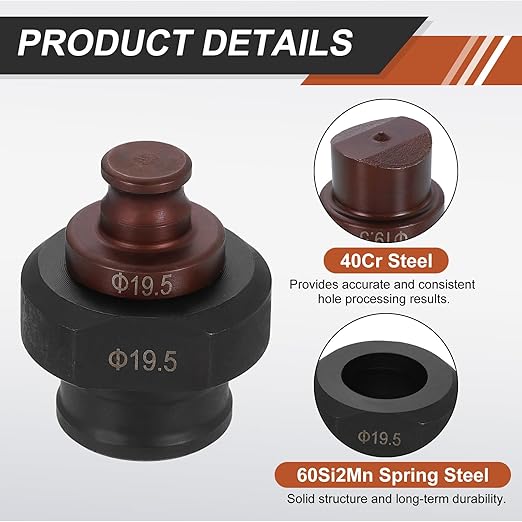 - Material - The upper die of this hydraulic punch kit is made of 60Si2Mn spring steel, and the lower die is made of 52Cr steel, which has excellent performance and durability.