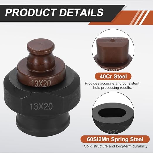 HARFINGTON Hydraulic Hole Punch Die 13x20mm Oval Hole 40Cr Steel Electric Punching Kit for MHP-20 JP-20 Electric Punching Machine, Burgundy & Black