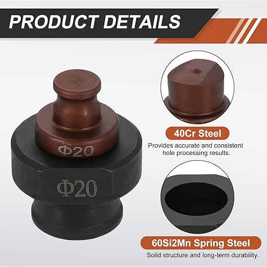 - Material - The upper die of this hydraulic punch kit is made of 60Si2Mn spring steel, and the lower die is made of 53Cr steel, which has excellent performance and durability.