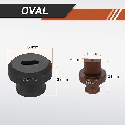 HARFINGTON Hydraulic Hole Punch Die 6x15mm Oval Hole 40Cr Steel Electric Punching Kit for MHP-20 JP-20 Electric Punching Machine, Burgundy & Black
