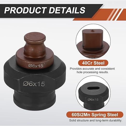 - Material - The upper die of this hydraulic punch kit is made of 60Si2Mn spring steel, and the lower die is made of 70Cr steel, which has excellent performance and durability.