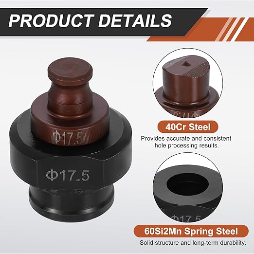 - Material - The upper die of this hydraulic punch kit is made of 60Si2Mn spring steel, and the lower die is made of 50Cr steel, which has excellent performance and durability.