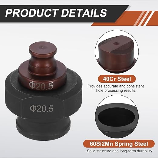 - Material - The upper die of this hydraulic punch kit is made of 60Si2Mn spring steel, and the lower die is made of 54Cr steel, which has excellent performance and durability.