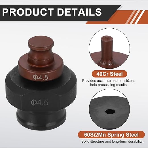 HARFINGTON Hydraulic Hole Punch Die 4.5mm Round Hole 40Cr Steel Electric Punching Kit for MHP-20 JP-20 Electric Punching Machine, Burgundy & Black