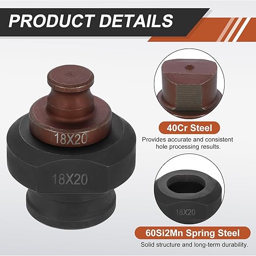- Material - The upper die of this hydraulic punch kit is made of 60Si2Mn spring steel, and the lower die is made of 69Cr steel, which has excellent performance and durability.