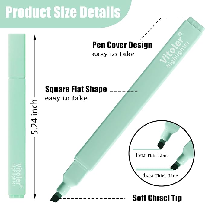 - Easy to Hold:Our highlighter is designed with square shape,it’s comfortable and easy to grip without a sore hand, and square pen body makes it non-rolling, not easy to roll off the table.