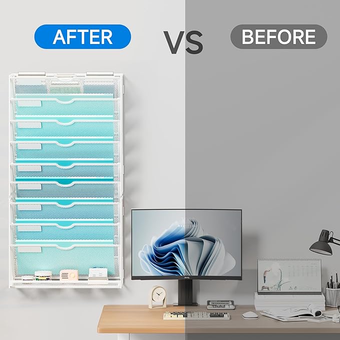 - Wall Mount Space-Saving: Maximize vertical space with this wall-mounted file holder. Easily attach it to the wall to keep your home or office clutter-free and organized