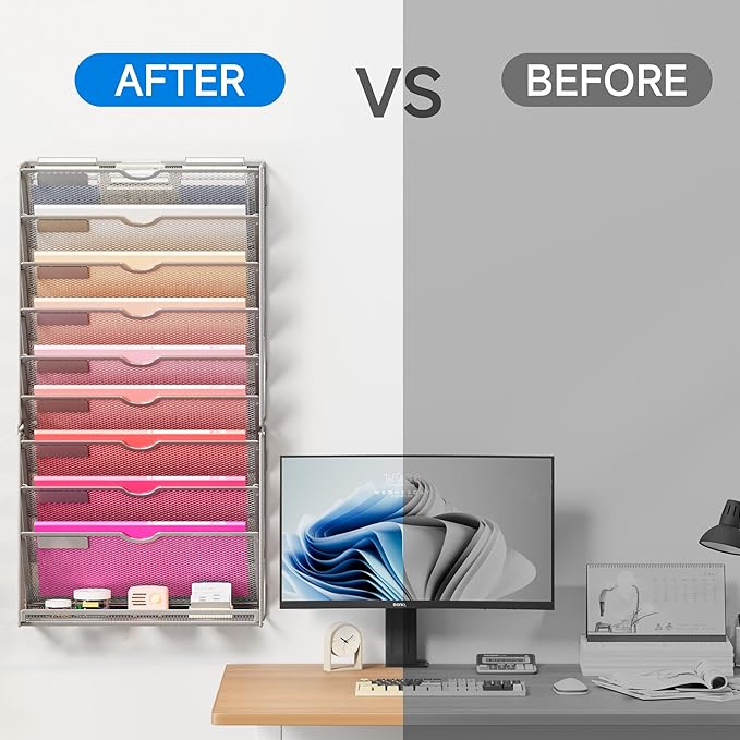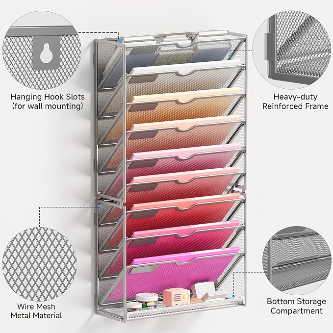 - Wall Mount Space-Saving: Maximize vertical space with this wall-mounted file holder. Easily attach it to the wall to keep your home or office clutter-free and organized