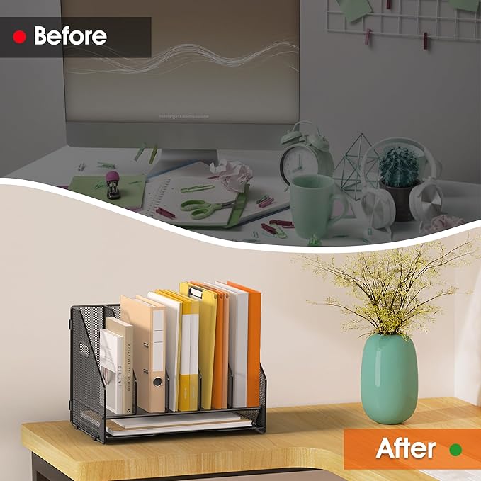- Exceptional Stability and Durability - This folder organiser is made of metal mesh for durability and has a special powder coated finish that is both attractive and sturdy.4 anti-scratch rubber feet protect your desktop from damage and keep the organiser firmly in place, making it a reliable office file organizer and teacher desk organizer. A must-have for classroom storage organizers and book organizer for desk, ensuring seamless desk organization in any setting