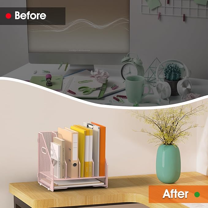 - Exceptional Stability and Durability - This folder organiser is made of metal mesh for durability and has a special powder coated finish that is both attractive and sturdy.4 anti-scratch rubber feet protect your desktop from damage and keep the organiser firmly in place, making it a reliable office file organizer and teacher desk organizer. A must-have for classroom storage organizers and book organizer for desk, ensuring seamless desk organization in any setting