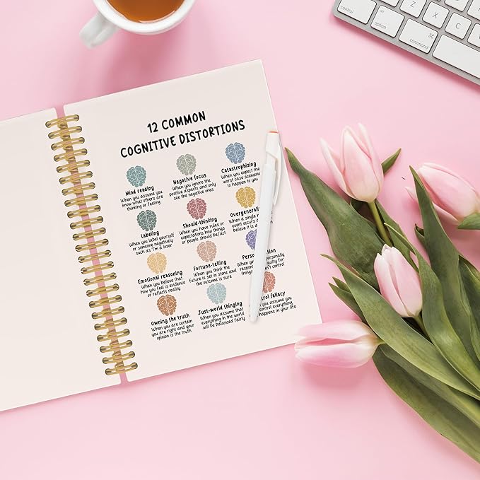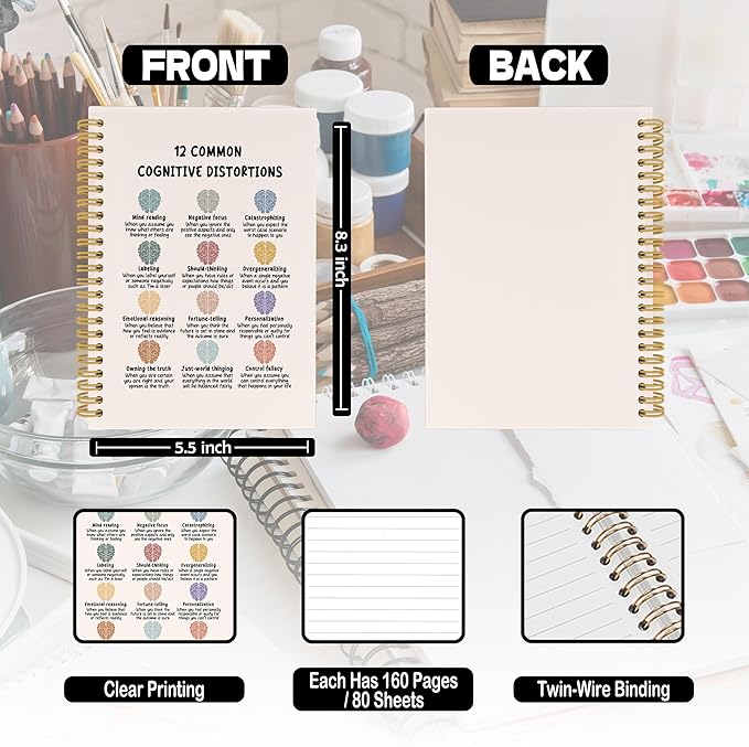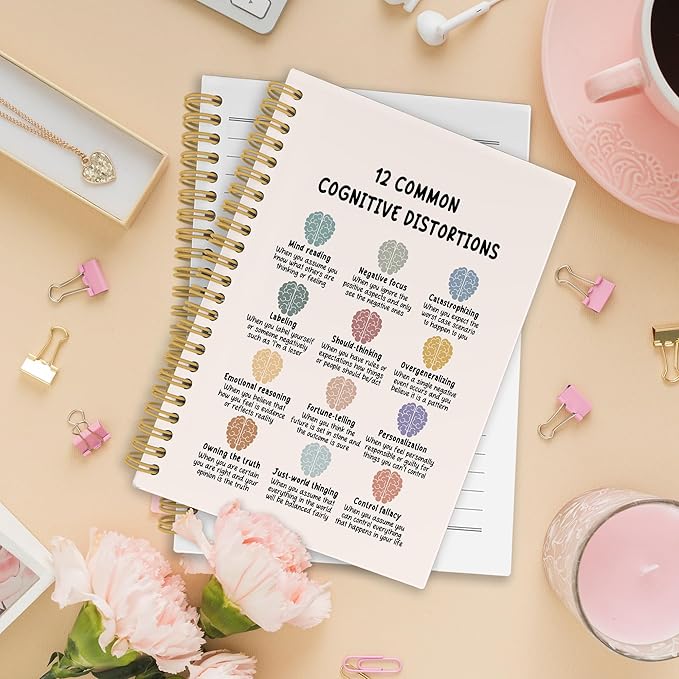 XPH Mental Health Cognitive Distortions Spiral Notebook, Psychology Journaling Notebooks for Women Men, Therapy Hardcover Journal for Counselor Office 160 Pages 5.5 x 8.3 Inch, Mental Health Gifts