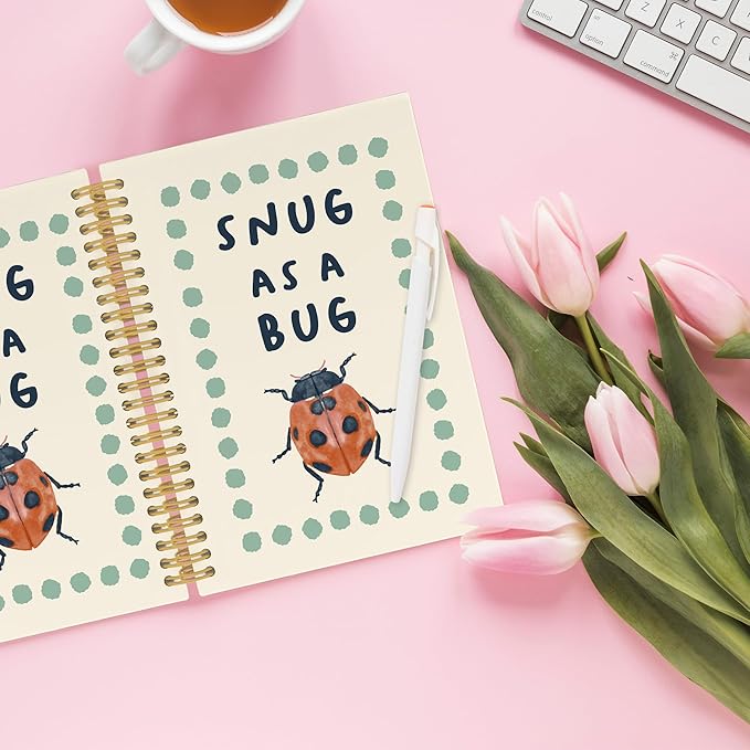 XPH Funny Ladybird Spiral Notebook, Ladybug Journaling Notebooks for Note Taking, Retro Insect Hardcover Journal for Writing 160 Pages 5.5 x 8.3 Inch, Ladybug Gifts for Women Men
