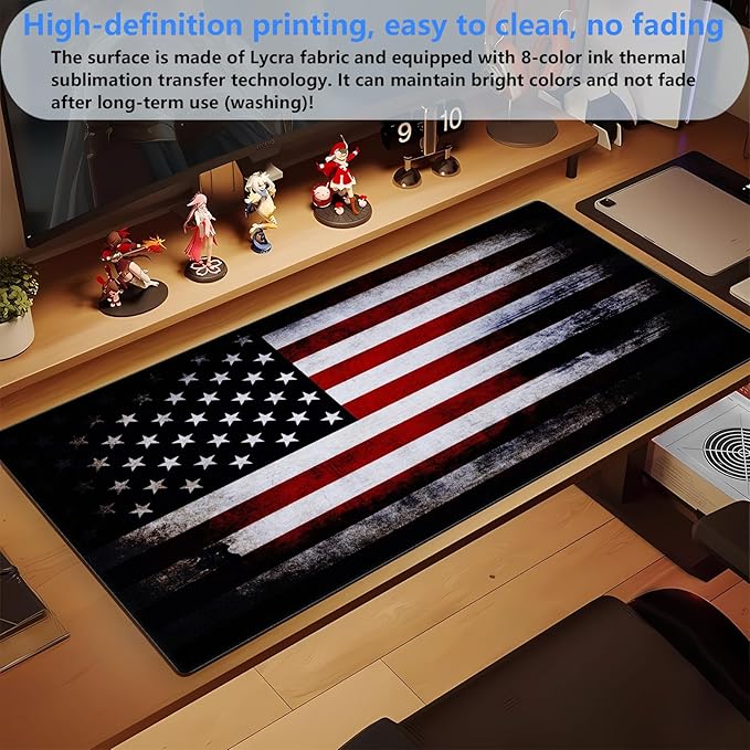 American Flag Desk Pad Mat Retro Design Art Desk Pad Extended XL Large Gaming Mouse Pad with Stitched Edges Mouse and Keyboard Computer Laptop Desktop Pad 31.5X15.7 in