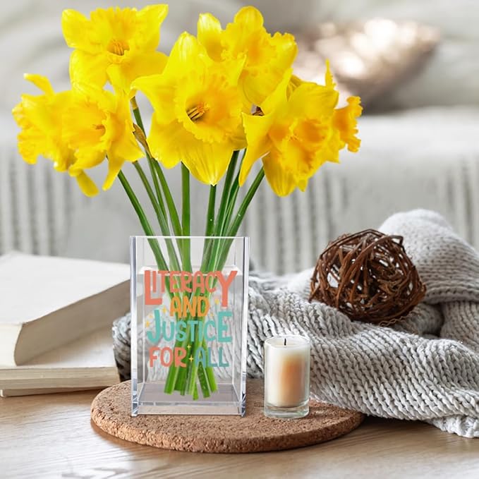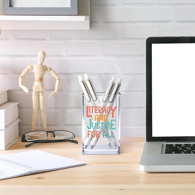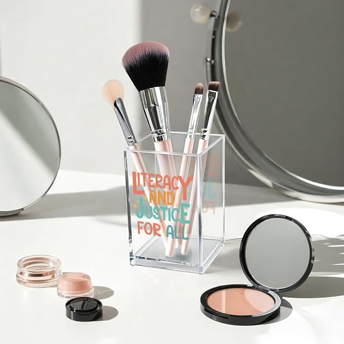 Literacy and Justice for All Acrylic Cosmetic Pencil Pen Holder Cup, Reading Book Club Pen Holder Cup, Bookish Gifts, Social Justice Gifts for Women Mom Sister Friend Coworker Librarian Teacher