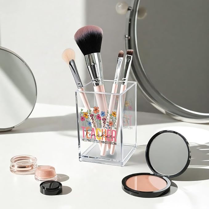 Teacher Helping Little Minds Grow Acrylic Cosmetic Pencil Pen Holder Cup, Cute Teacher Pen Holder Cup, Back to School Gifts, Graduation Appreciation Gifts for Women Men Teacher