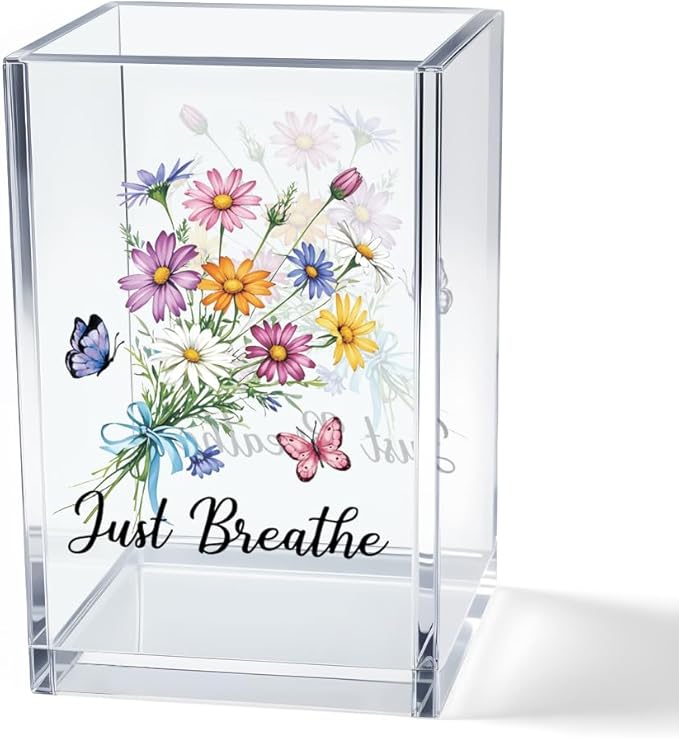 Just Breathe Acrylic Cosmetic Pencil Pen Holder Cup, Hope Inspirational Makeup Brush Organizer Holder, Women Faith Gifts, Encouragement Gifts for Women Mom Daughter Sister Friend Yoga Teacher