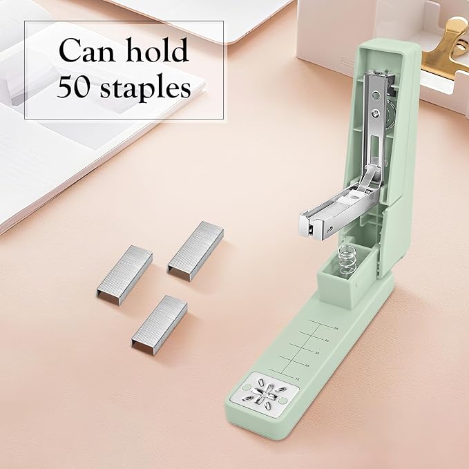 Swing-Arm Swivel Stapler - 20 Sheets Capacity, 360 Degree Rotate Desk Stapler with 100 Staples - Non-Slip Office Stapler, Green