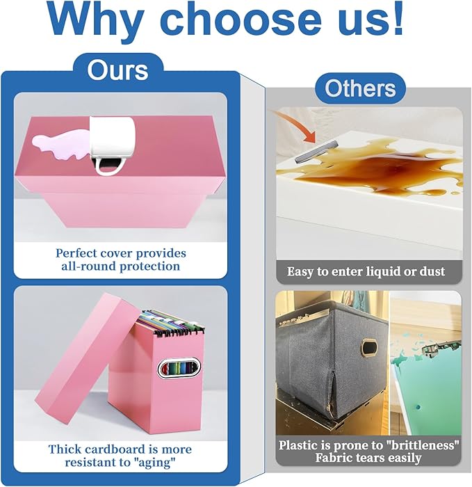 - Secure Document Protection Features: Tight-fitting lid + solid base prevent moisture, dust, and accidental damage. Use as a desktop file folder box, file storage bin, or hanging file folder holder
