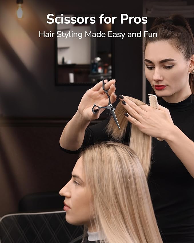 - Great for All Hair Types: Perfect for cutting, trimming, and shaping hair of any length or texture—whether you're doing blunt cuts, layers, or refining contours. A must-have for both men’s and women’s hairstyles, as well as kids and pets, these scissors are ideal for home users, stylists, and barbers alike.