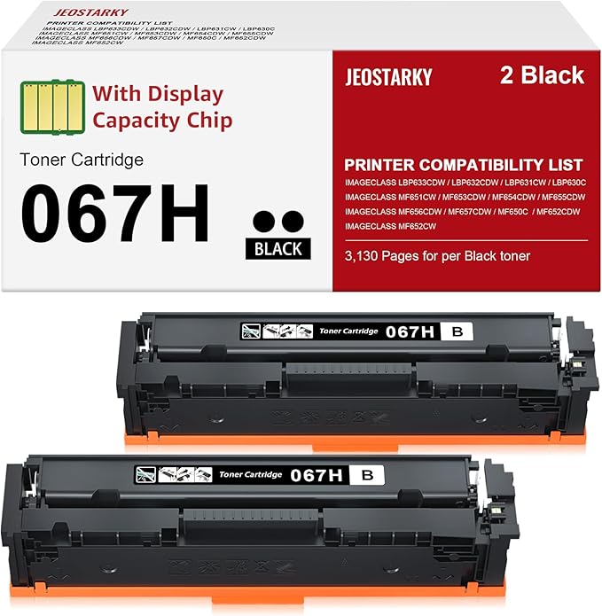 - Display Capacity Chip: Designed with advanced chip technology ensure compatibility for canon 067 black toner cartridge set and monitor the remaining toner level of the toner cartridge in real time, avoiding printing interruptions