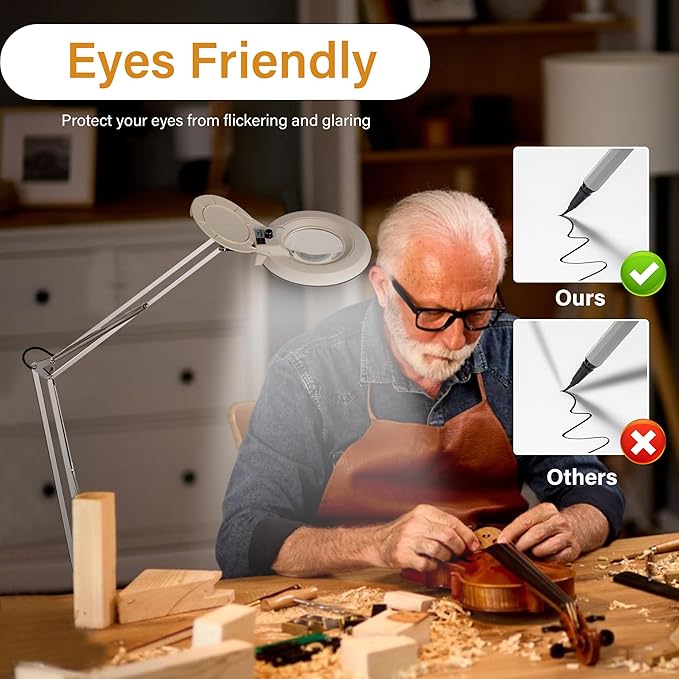 - 【Tool-Free Setup & Lifetime Support】 This magnifying glass with light and stand installs instantly with its clamp or free-standing base. The magnifying lamp with light includes a lifetime warranty, making it a reliable desk light solution for workshops, art studios, and reading nooks.