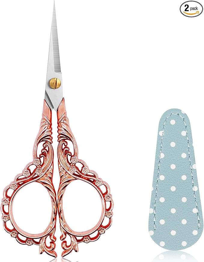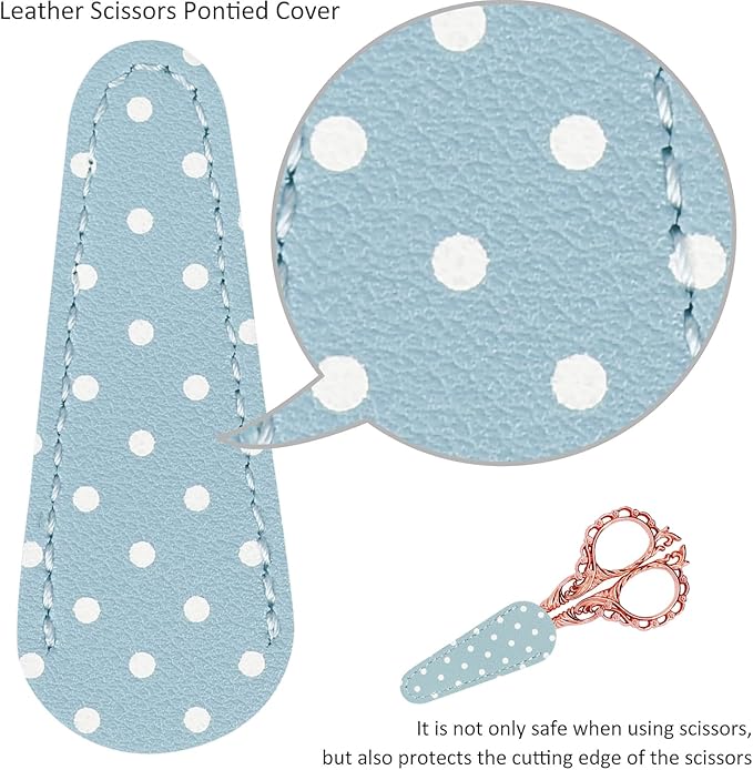 - Scissors with cover:1pc small sewing scissors and 1pc leather scissors safe cover. suitable to be as a delicate gift for friends or families who love embroidery, DIY working, and keep children away from scissors.