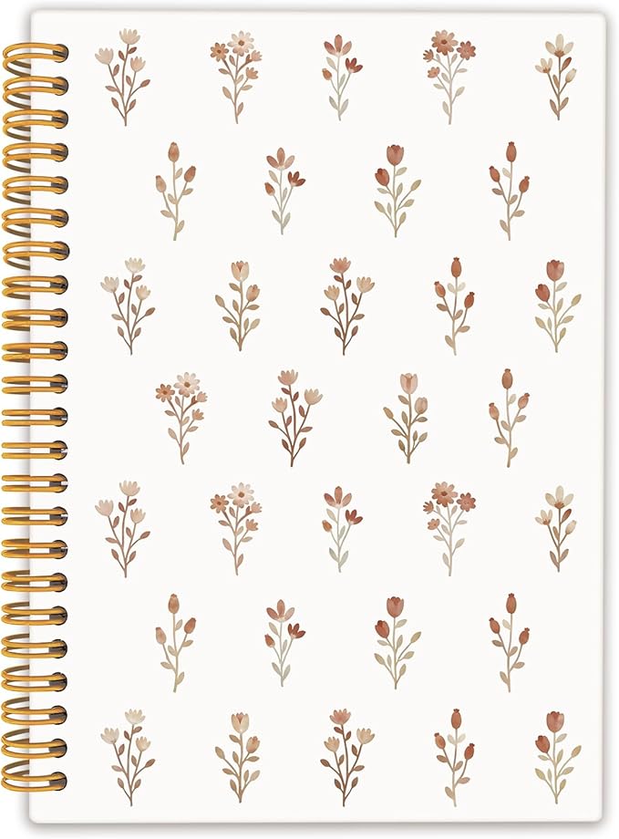 Boho Floral Spiral Notebook Journal, Cottagecore Wildflower Flower Notebooks for Note Taking, Pretty Journals for Women, Hardcover Notebook 5.5x8.3