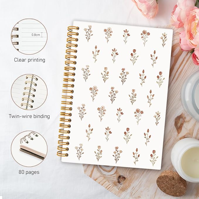 - 【Spiral Bound】: The spiral notebook features a double-wire binding with gold threads, ensuring that do not loosen easily, providing smooth page-turning. The notebook can be folded 360°, enhancing the writing experience.