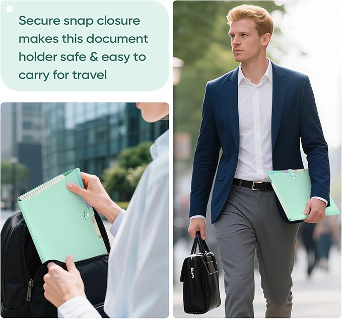 - Sleek, Secure, and Portable:This lightweight folder organizer slips easily into backpacks, laptop bags, or file cabinets. Its slim design makes it perfect for carrying between rooms, offices, or on the go. Built with durable ultrasonic-welded side panels and rounded corners, it offers strength and safety. The snap closure keeps your documents secure during transport.
