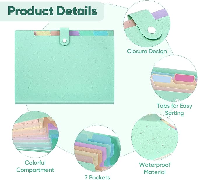 - Customizable Organization with Color-Coded Pockets:Keep your documents neatly organized with 7 expandable color-coded pockets. The included index sheet with customizable allows you to label your files by category, date, or project, making retrieval fast and simple. The clear layout ensures everything is easily identifiable and accessible when you need it.